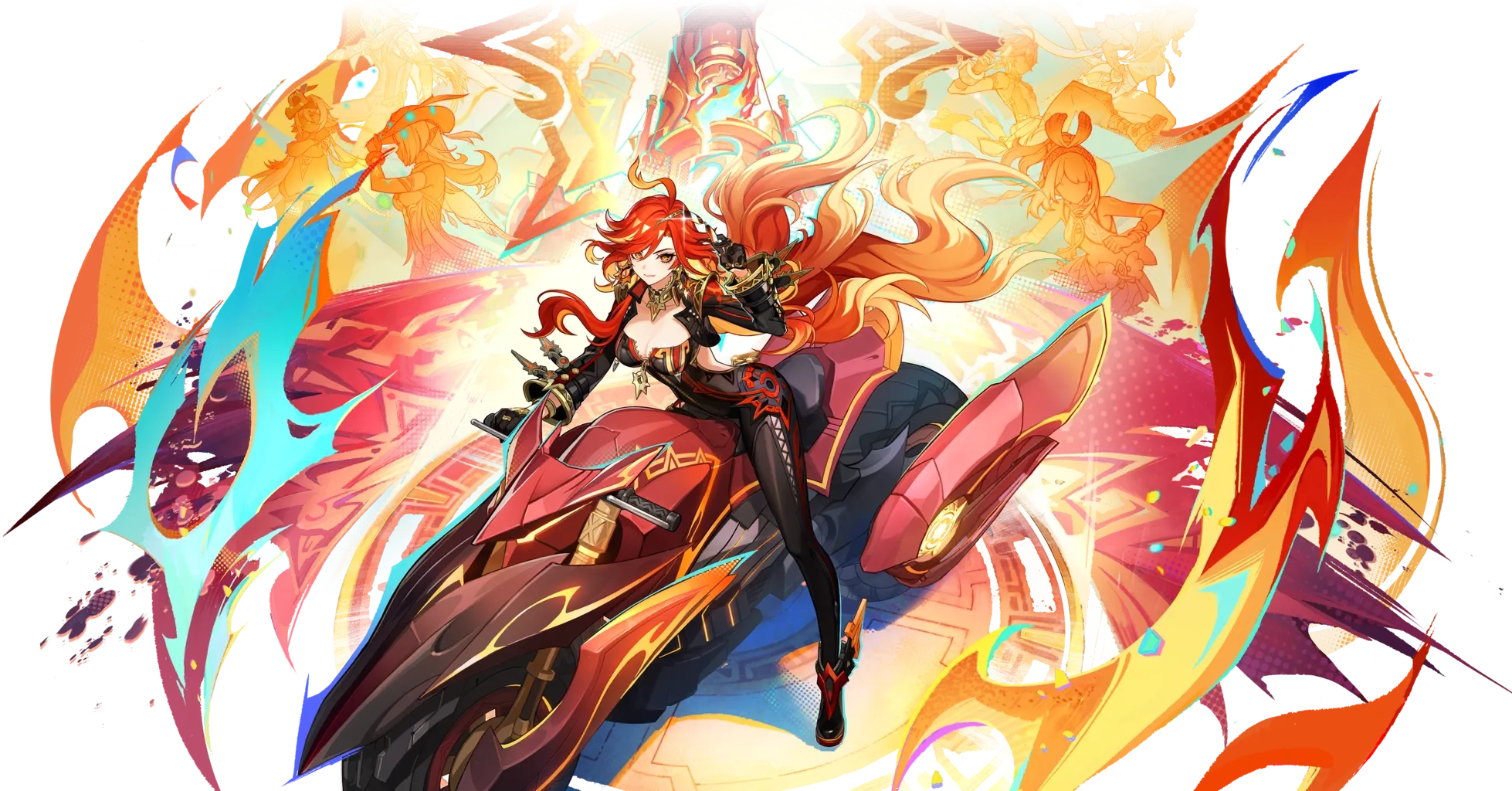 Clamando a sua autoridade sobre o "conflito", Mavuika invoca os Armamentos Flamejantes, causando Dano Pyro com alinhamento Espírito da Noite.